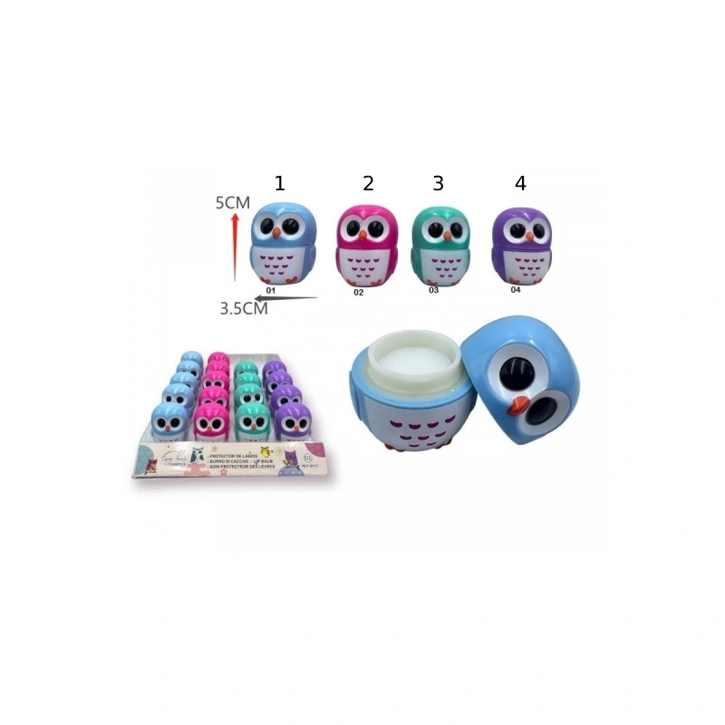Bálsamo en forma de búho, cuatro colores diferentes.