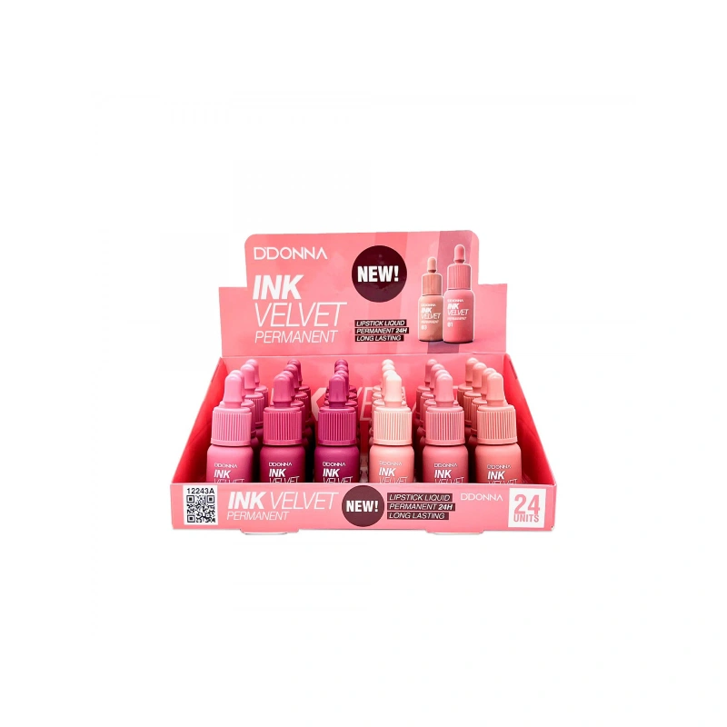 INK VELVET DDONNA: Se trata de un pintalabios de larga duración. Posee un formato líquido que proporciona dos diferentes acabados; mate y permanente. Asi mismo, sus pigmentos se fijan fuertemente a los labios ofreciendo una coloración intensa y duradera. Además, este labial ofrece un novedoso diseño.