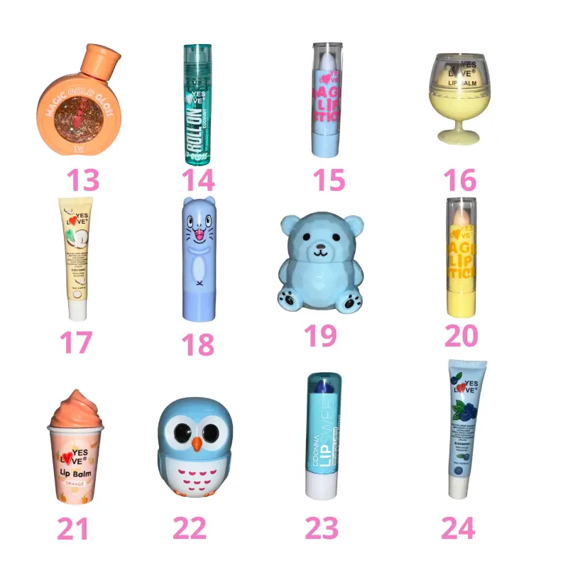 Encontraras brillos de labios, aceites labiales, bálsamos, todos super lindos y divertidos.