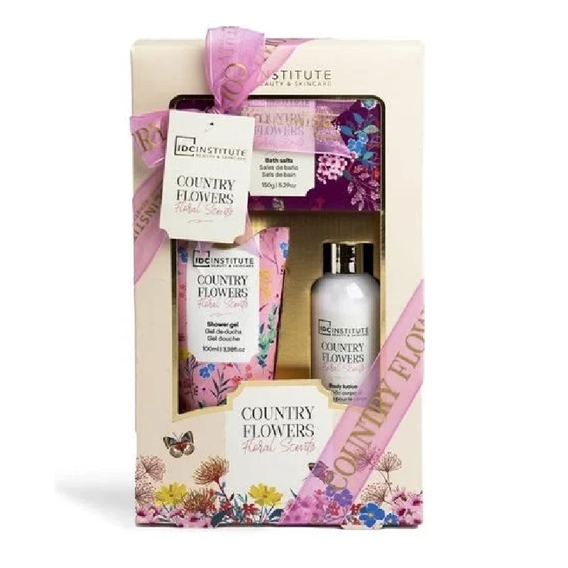 Set compuesto por gel de ducha floral de 150 ml, loción corporal de 80 ml y sales de baño de 150 g.